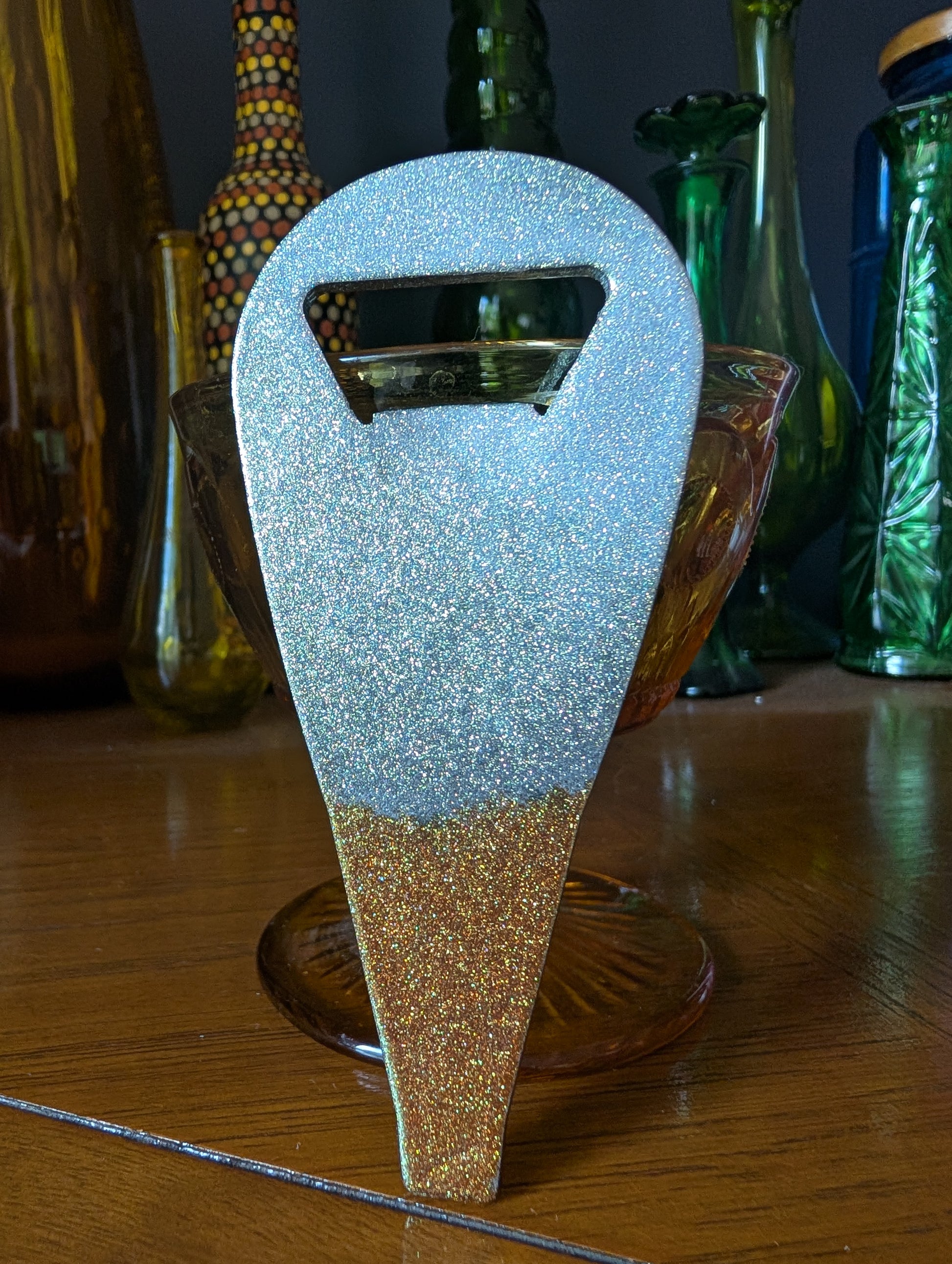 Add a pop of sparkle to your celebrations with this handforged Hot Air Balloon bottle opener. Covered in silver and gold glitter, it’s as fun to look at as it is handy for popping open your favorite drinks. Lightweight and sturdy, this unique opener lifts your spirits and bottles with flair!