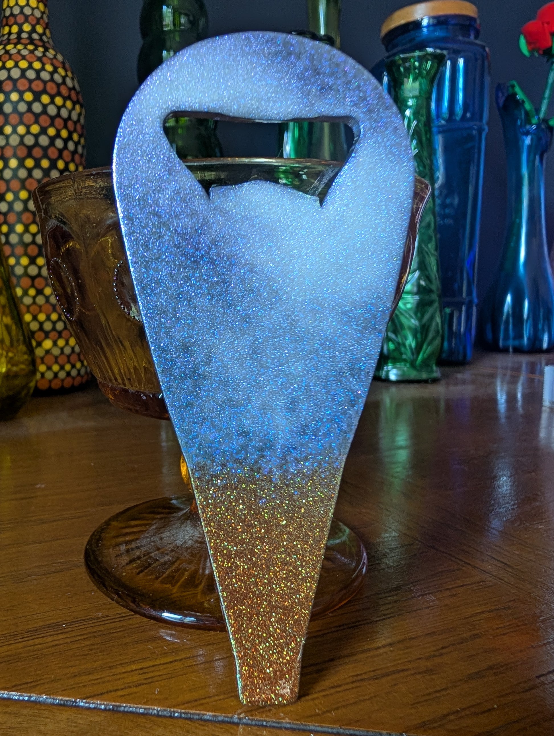 Add a pop of sparkle to your celebrations with this handforged Hot Air Balloon bottle opener. Covered in purple and gold glitter, it’s as fun to look at as it is handy for popping open your favorite drinks. Lightweight and sturdy, this unique opener lifts your spirits and bottles with flair!