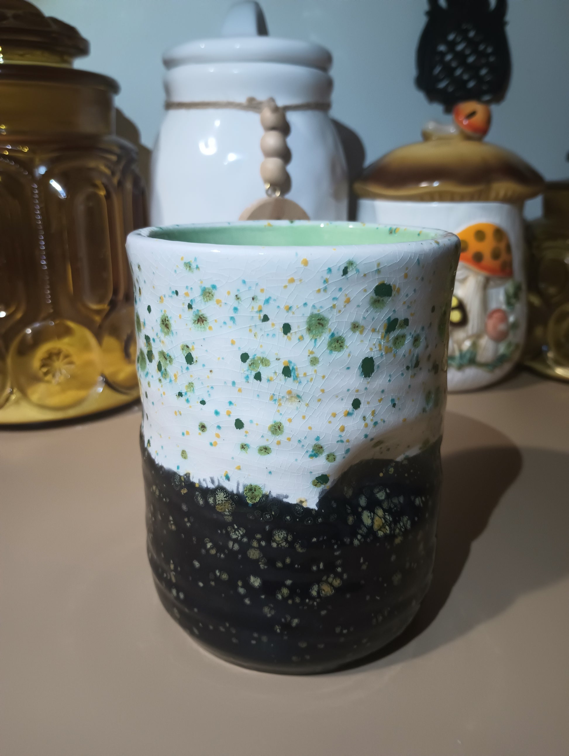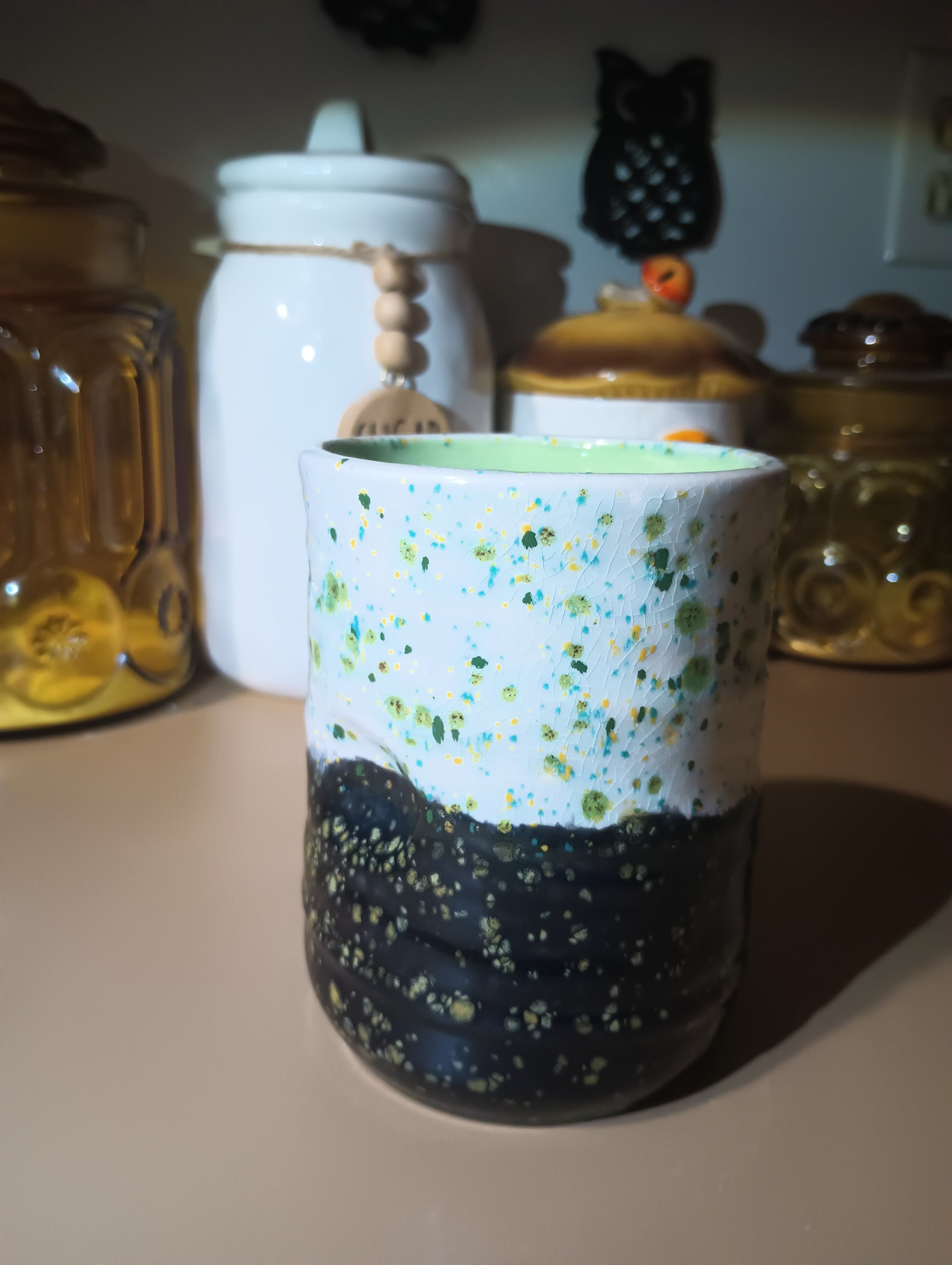 Sip in style with the Two-Toned Thumbler! This ceramic mug features a unique two-toned design and convenient thumb grips for easy handling. Each mug is hand painted for a one-of-a-kind touch. Upgrade your mug game today!